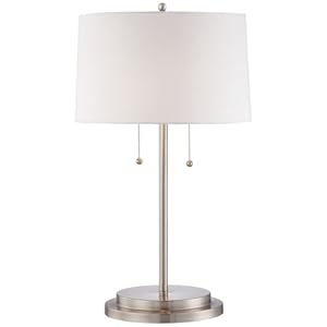 28" Brushed Nickel Swing Arm Table Lamp with on/off push button base switch, 8' 3-prong grounded cordset, two outlets. Includes 11"x15"x10" White Linen … Read Here